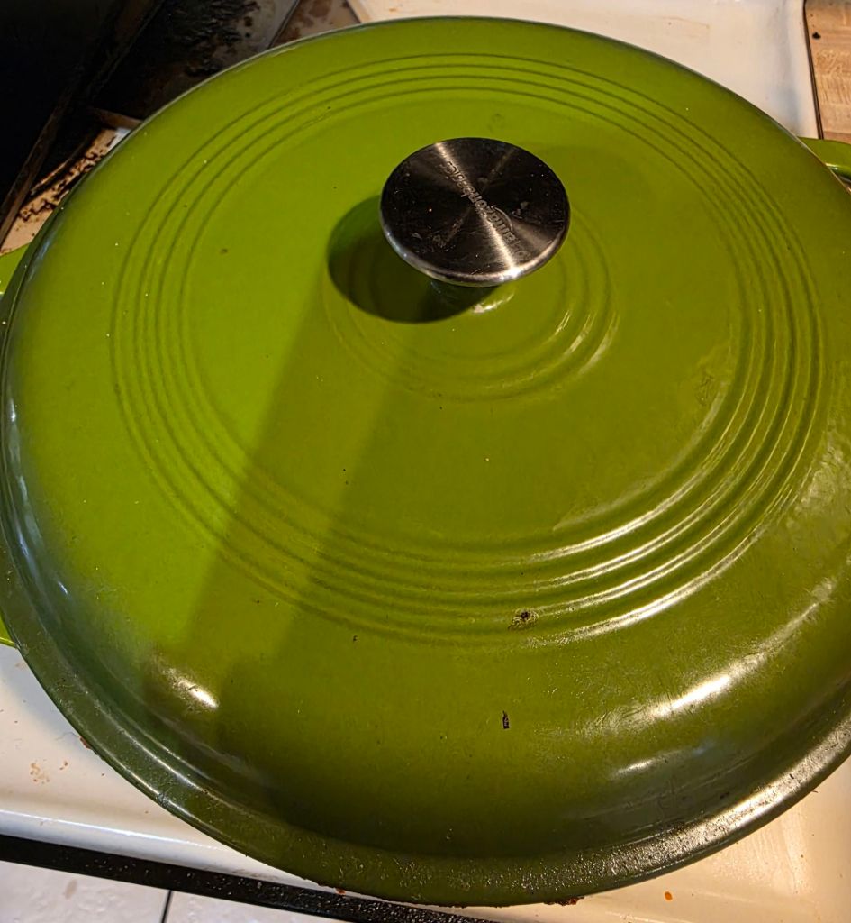at least a 7.qt enambled dutch over or a big no stick pot