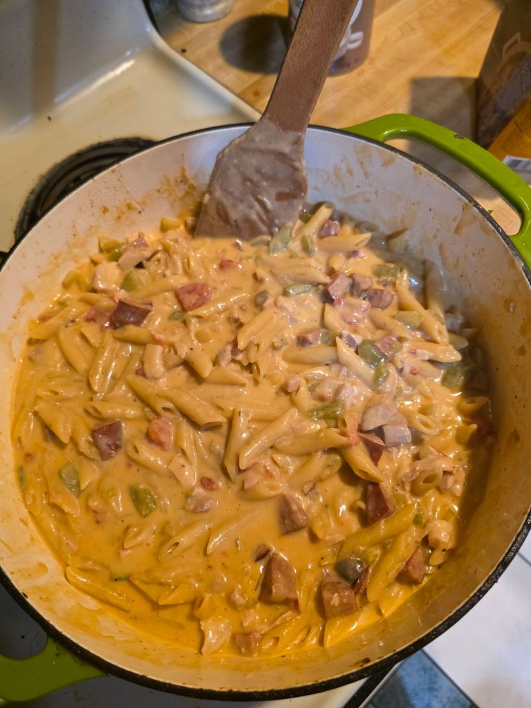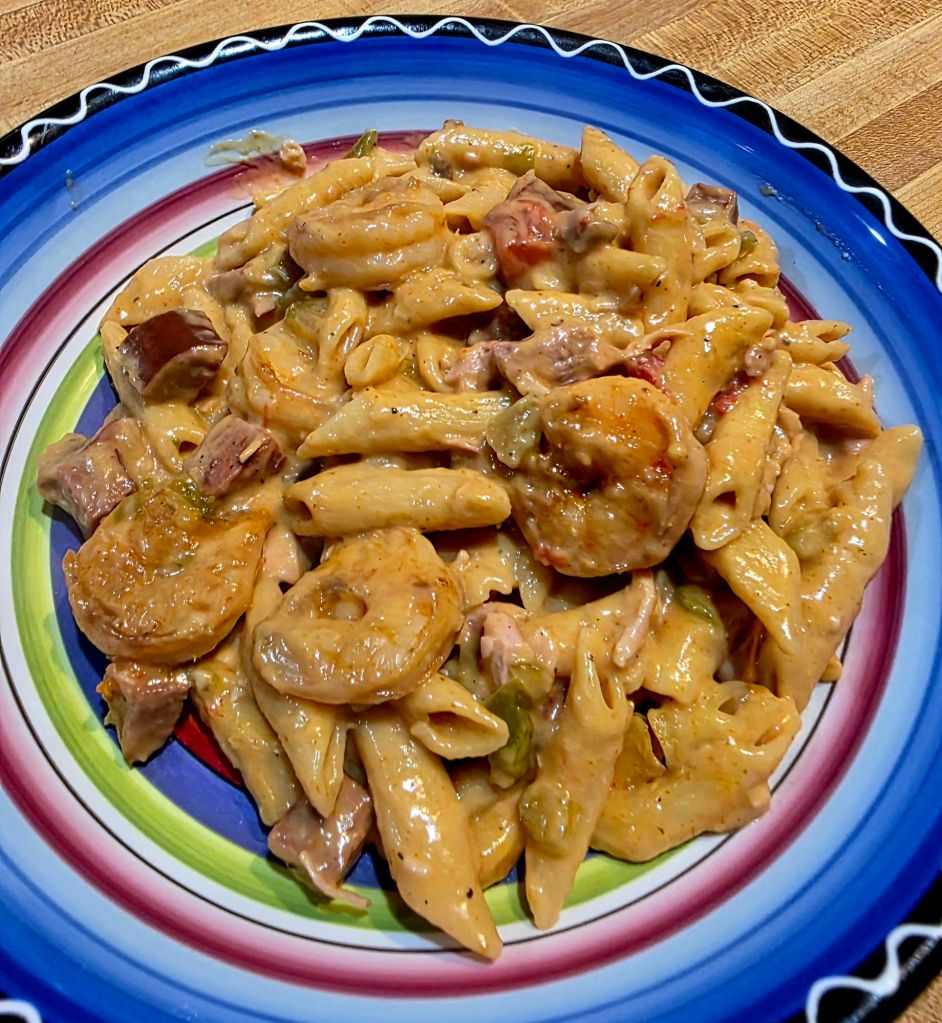 when a italian and a cajun have a baby u win for sho lol. jk. but for real id make this for myself more than regular jambalaya depending on what else im making. its like the ultimate cajun food crave killa hits on all levels. spice. comfort creamy. savory ….ect. stalekracker turned me on to this years ago n i tweeked it around n made it my own. heres what we need