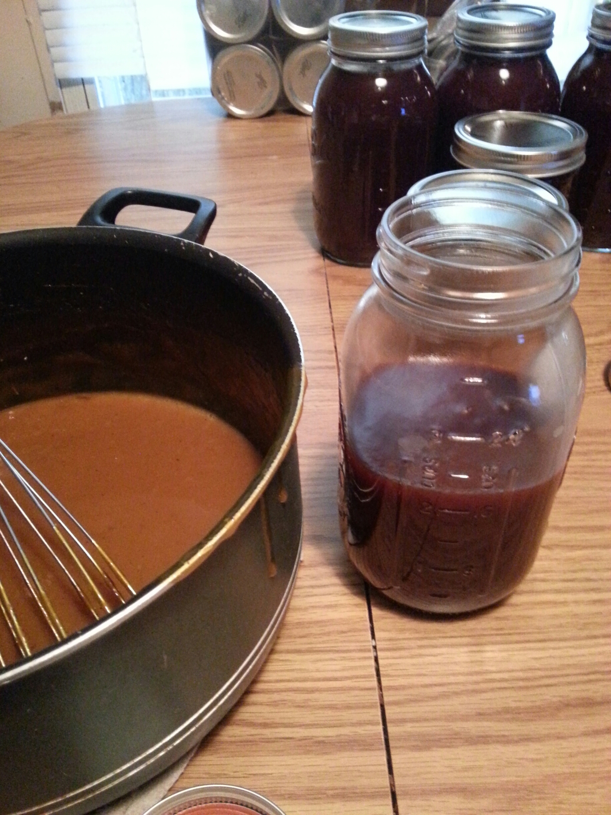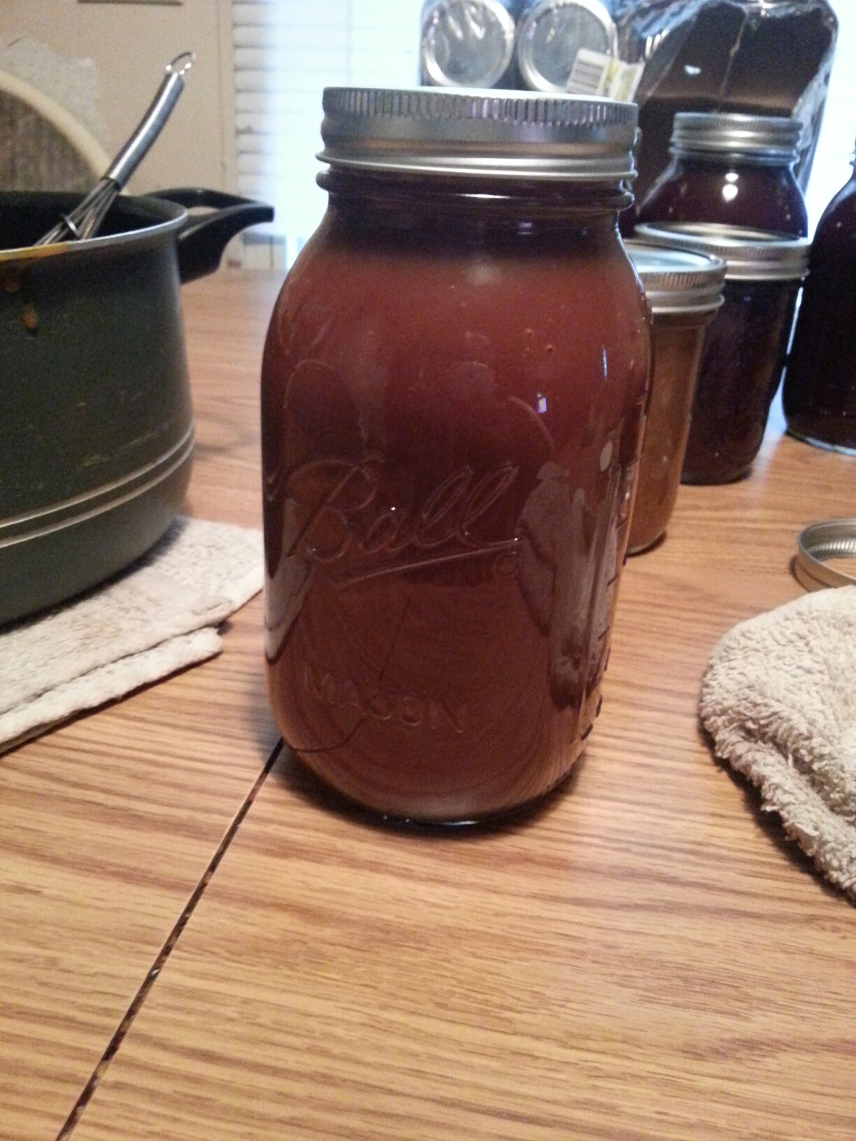 sum sexy red right there lol. makes enough for 2 quart jars and a pint. if u fill em while da mudds hot the jars will seal themselves in bout 20 min or less just leave da rings a tiny bit loose and leave a tad bit of room at da top of jar but there not processed so after they cool i put em in da fridge id say they should last 2 to 3 months but have never tested this cause it gets used fast lol