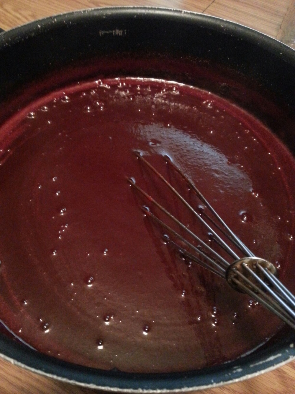 now that the wet n dry ingredients are mixed time to whisk em together n make sweet sweet meat mudd . gonna bring it to a slow boil over med high heat. when it starts to boil drop da heat all the way down to low n simmer for a hour stirring bout every 5 to 10 min its should reduce down in the pot by bout 3/4 or a inch