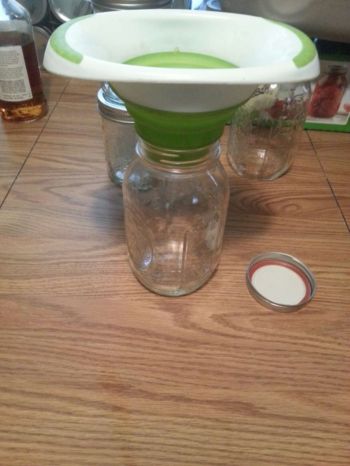 feel like im repeatin myself. im just gettin thirsty i guess lol. dont need to simmer as long as da red cauz less water to reduce out. its science bitch lol. oohhh breakin bad reference. k movin on. follow me. now just pour out your golden goodness into a quart jar and a pint cauz its all it makes alittle less than the red and its way more yellow than the pic. im not a photographer lol
