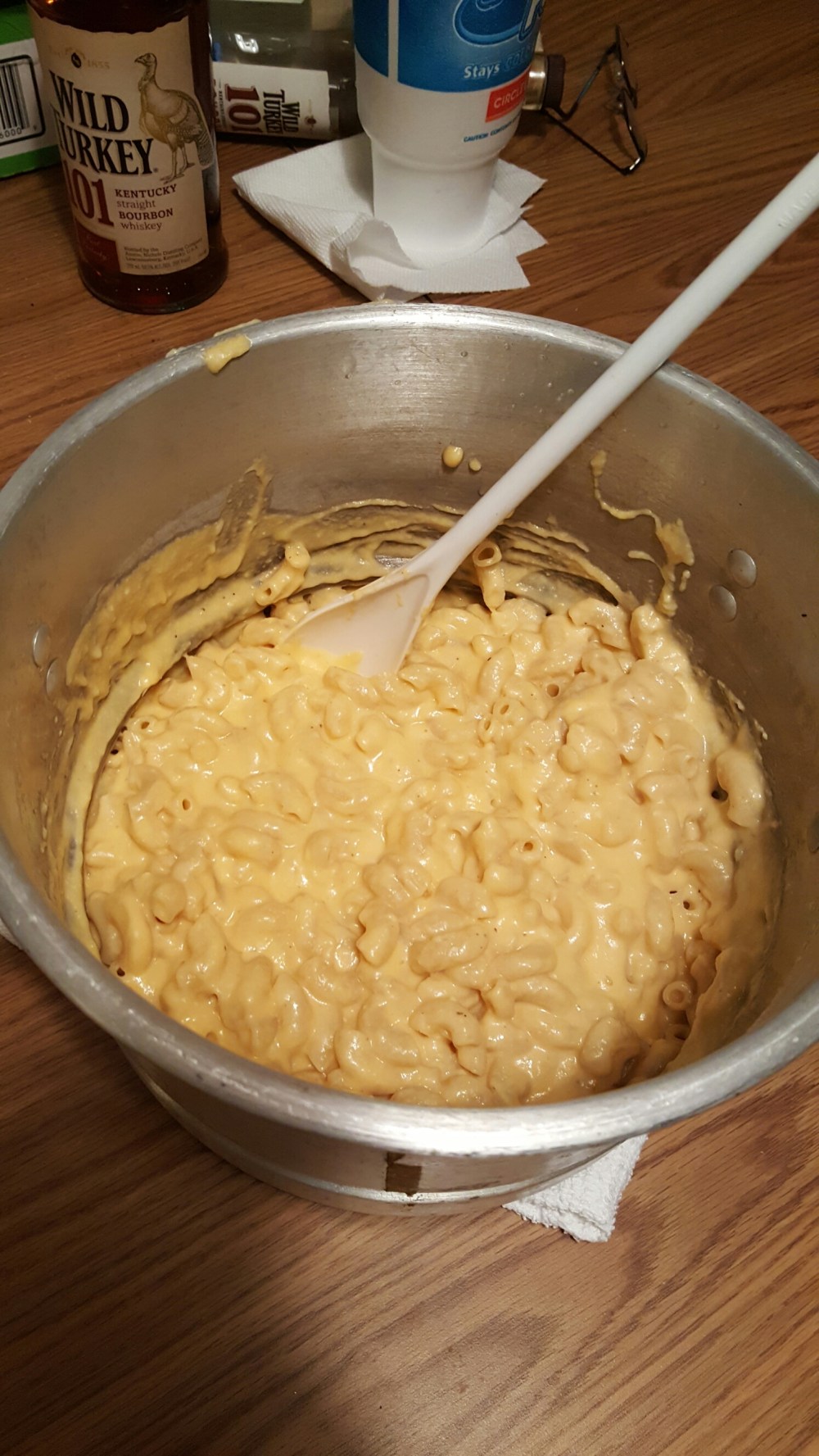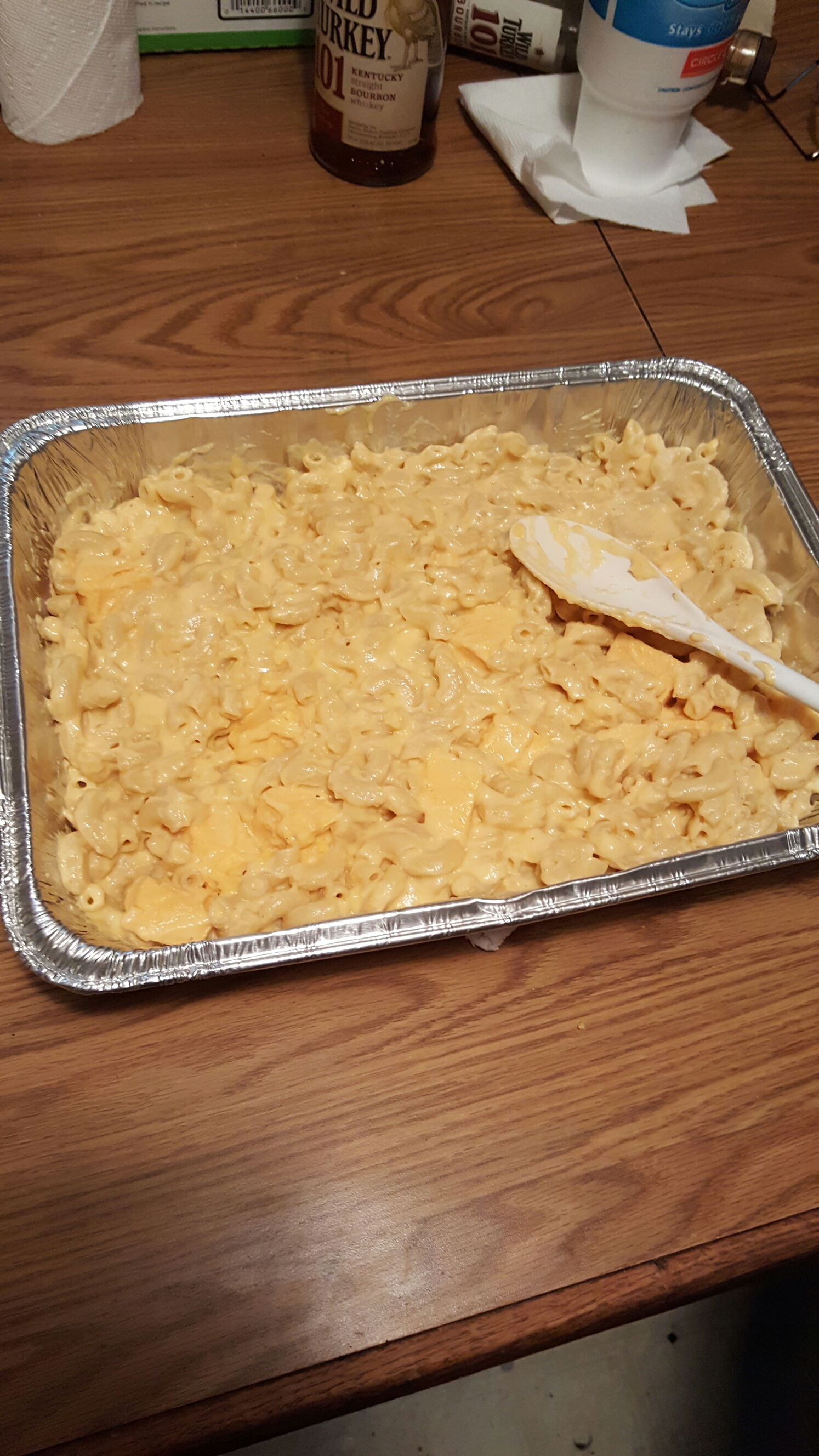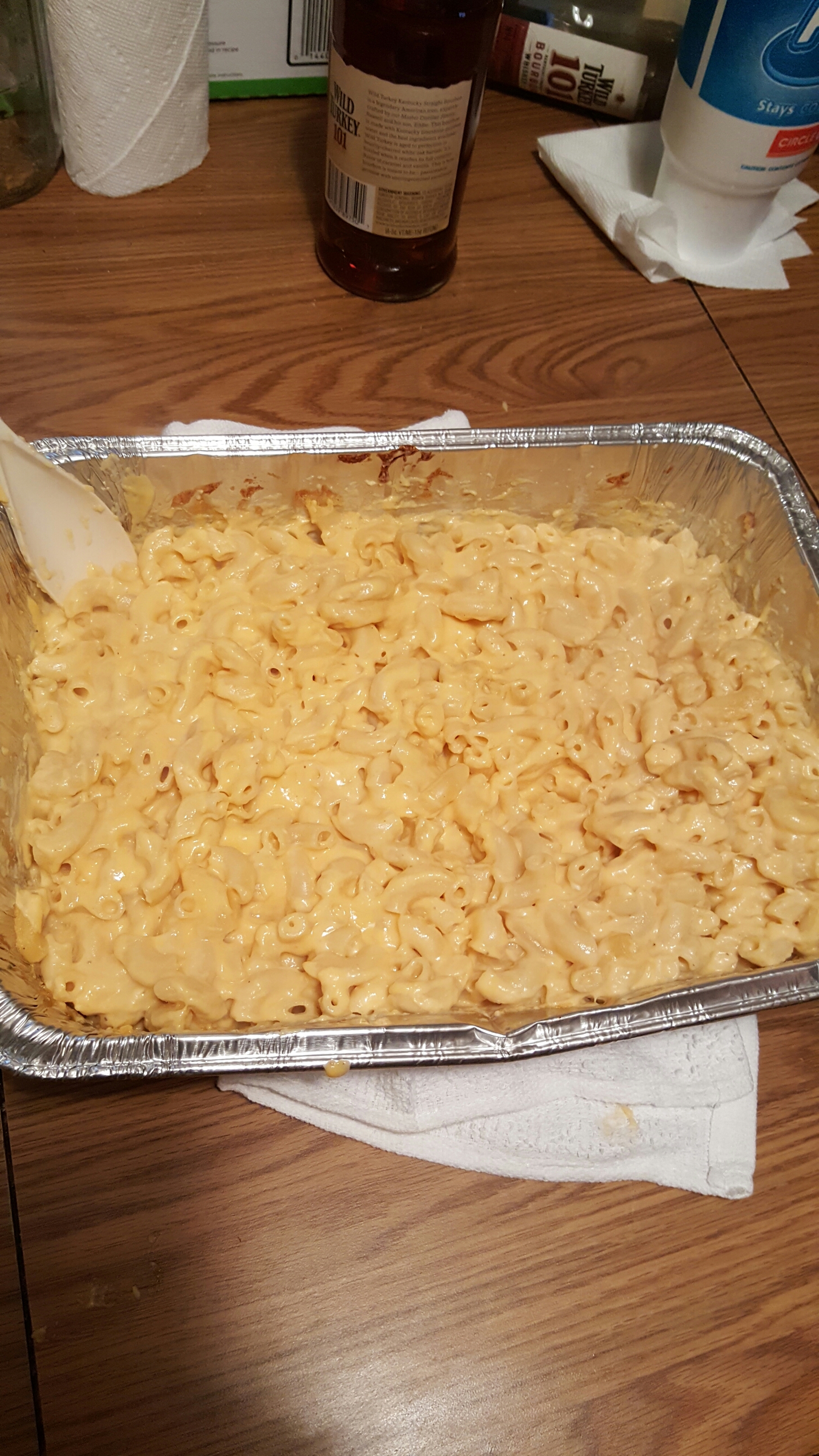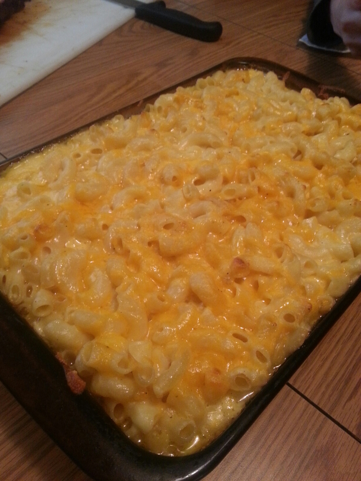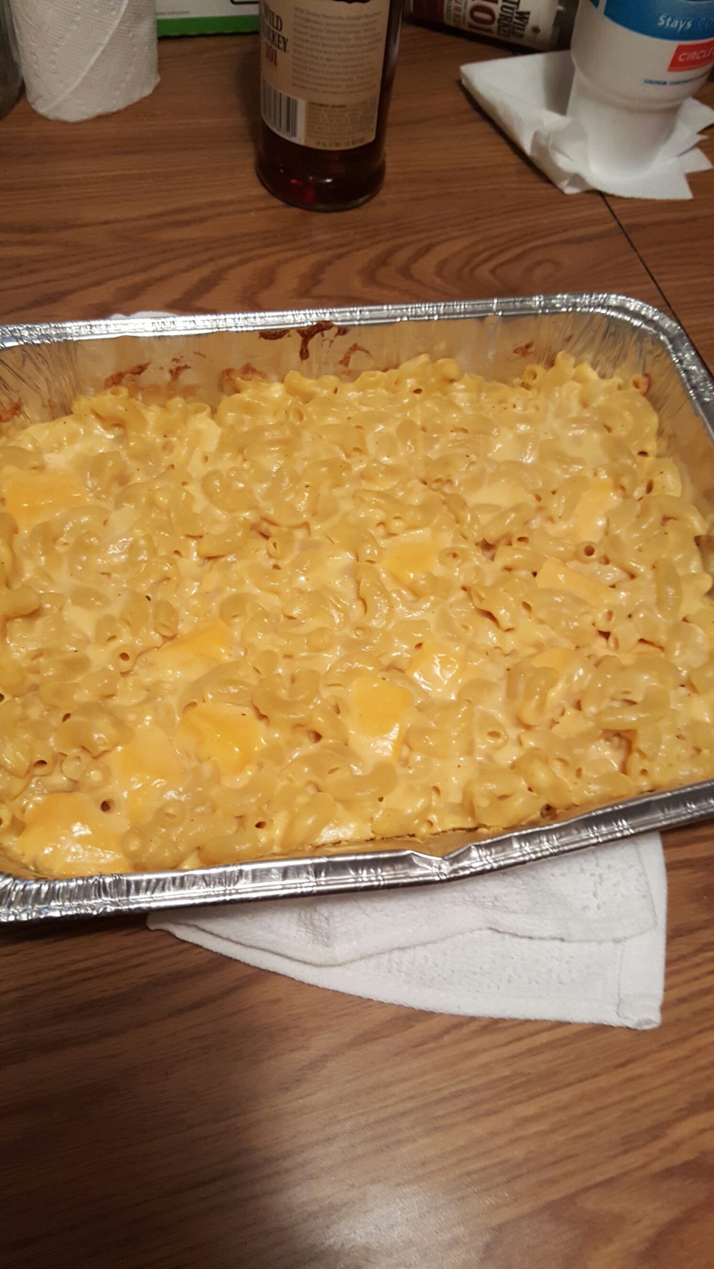 so ya its a different pan lol. i forgot to take a pic of da final product i was cuttin up brisket so thats all i could consentrate on at da moment lol. this was da second pan i made cauz i use all da mac n cheese as a distraction from my brisket so my boys dont eat it all lol now they’ll learn of my ruse lol so there ya go this versions been holdin strong for bout 3 years now