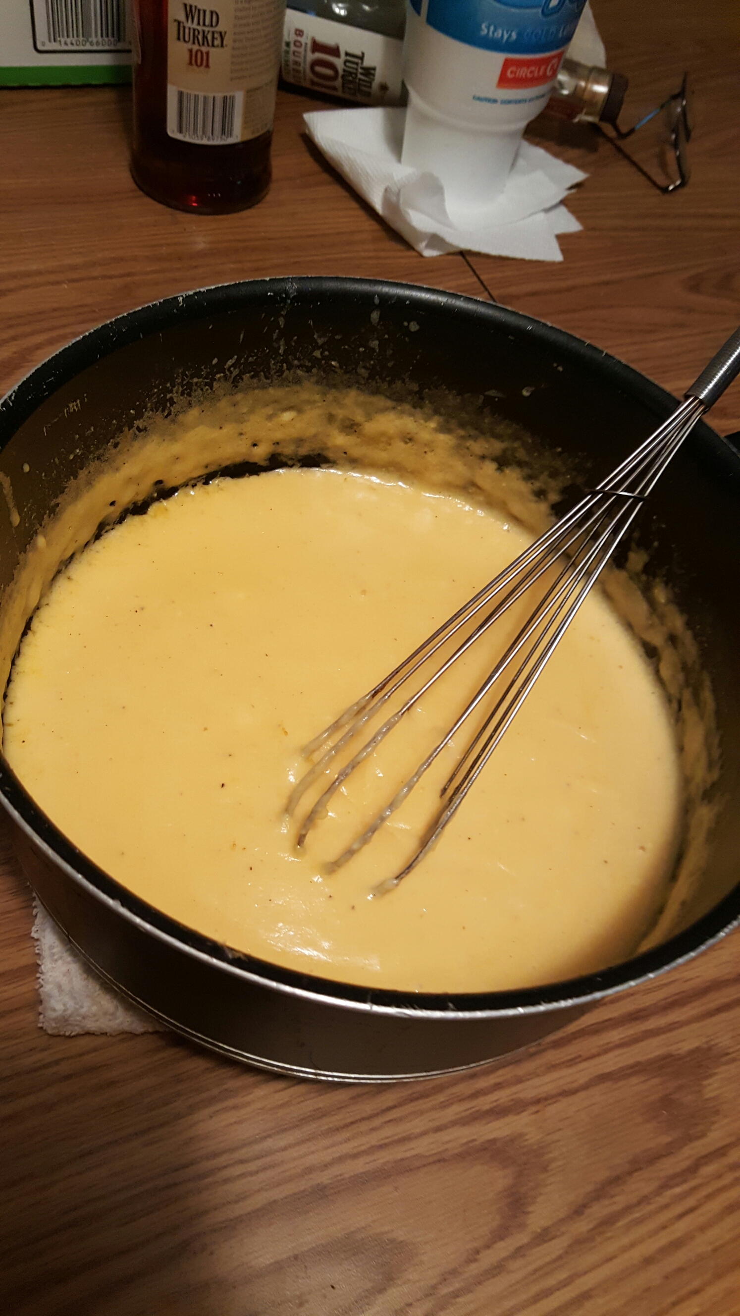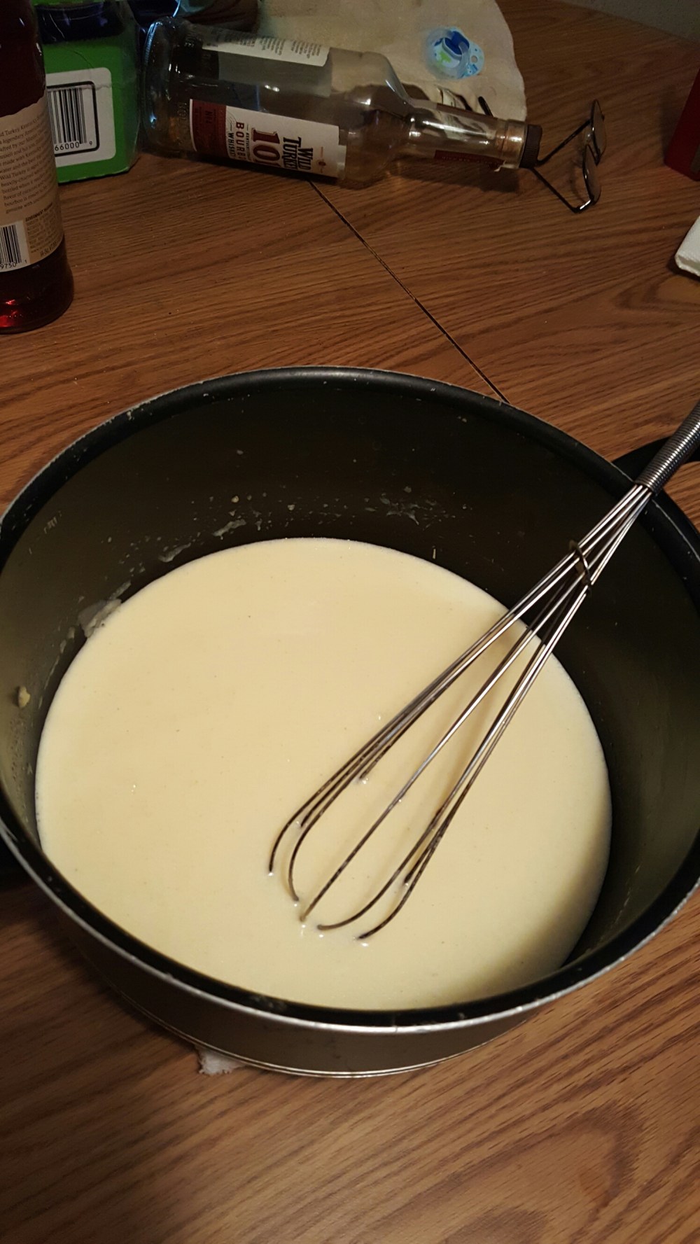 now we got our roux or thickiner lol well whisk in da milk eggs cream cheese mustard and seasonings till its all blended