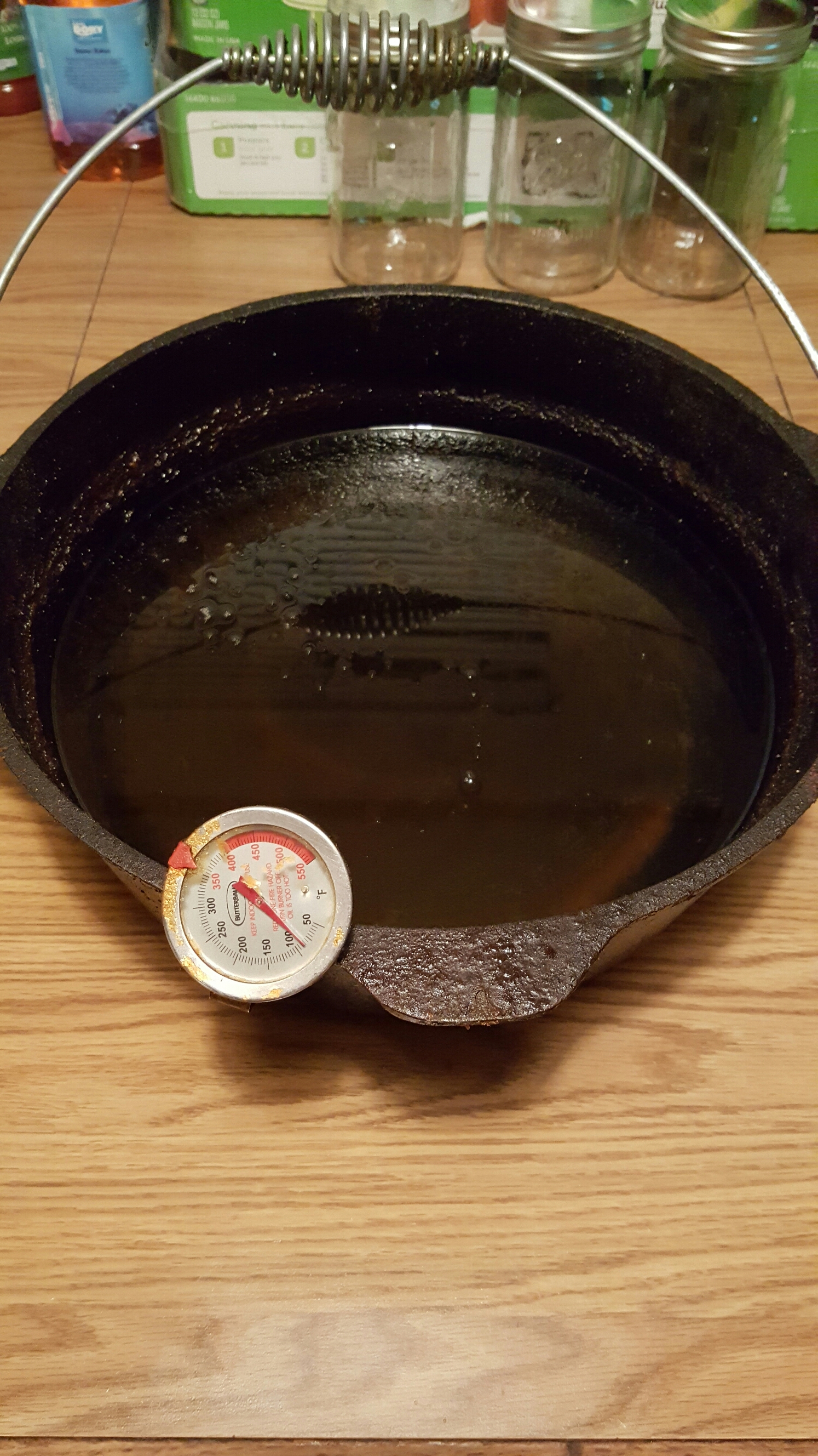 thanx bill.  i dont have a pic of da chicken in da pot cause i forgot but u can figure it out lol plus it looks weird lol k while da birds are brining get u a big 9qt. cast iron  pot or anything u can deep fry in. and a oil  fryn thermometer to keep track of the temp cause fryin can bring the house down if da oil gets over 400° it can explode n thats bad lmao