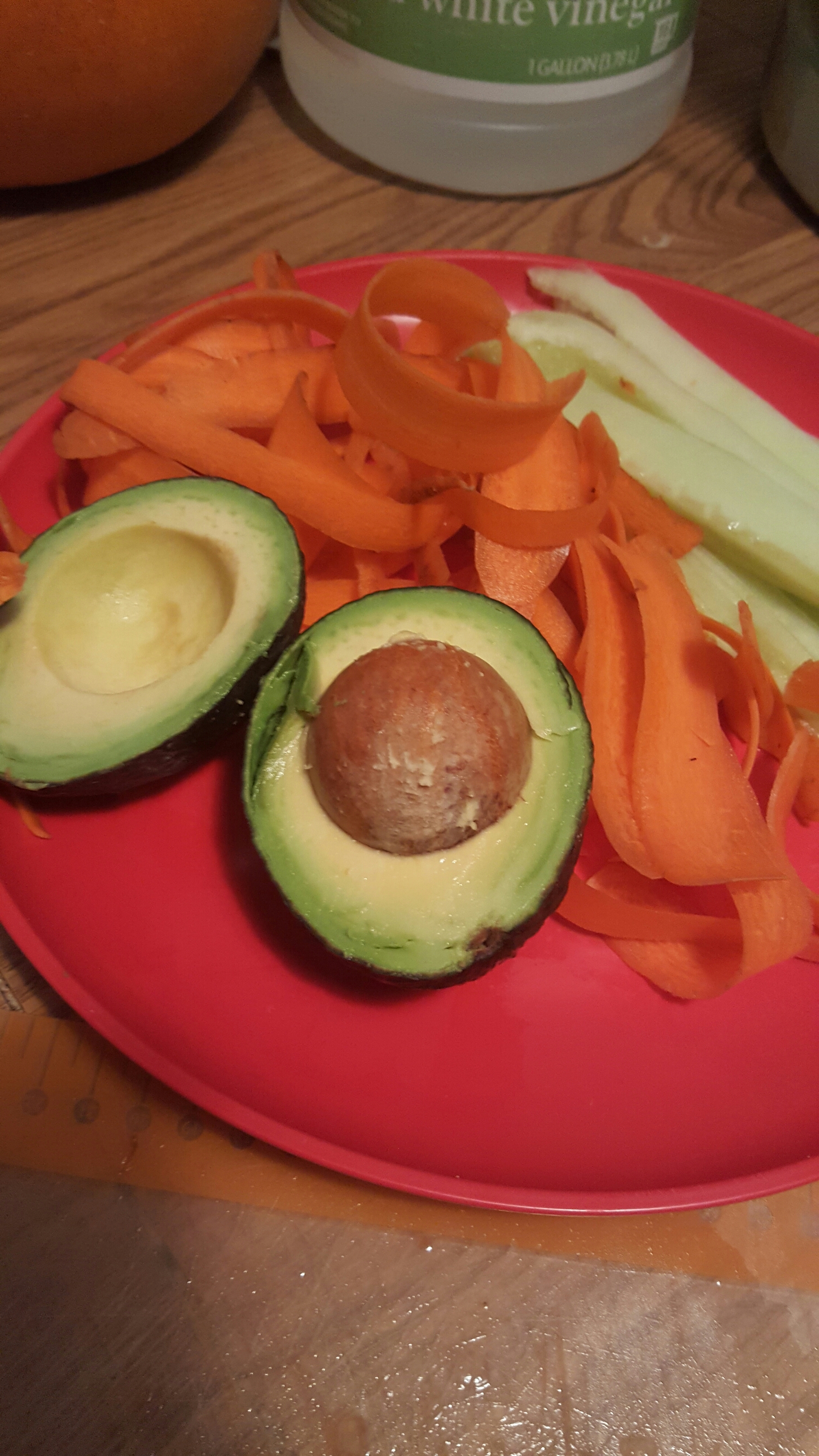 n take da avacado n pop da pit scoop da good good out wit a spoon all at once n slice it into strips too or eat one rite quik shhhhhhhh