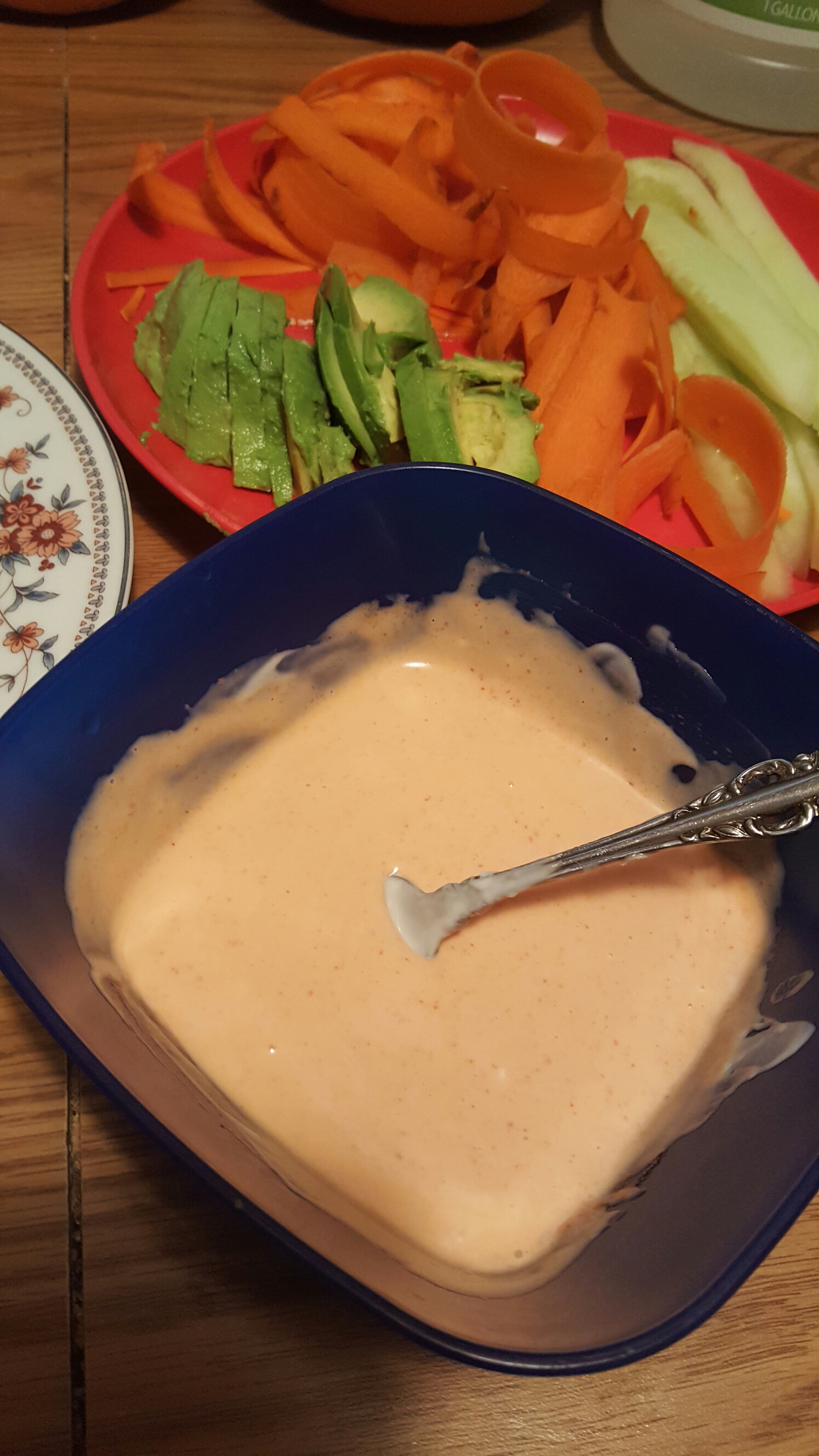 n boom. we got sirracha mayo. u can add more or less sirracha dependin on how hot u like it or buy it pre made but im poor folk n already have the 2 in my fridge soooo circle gets da square right duhh lol. oooooo n for da block too lol