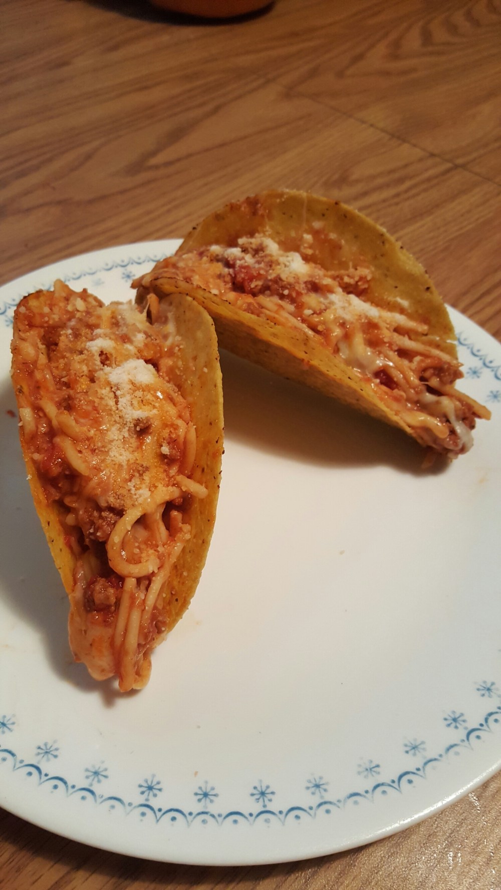 n da best part of leftovers is da spaghetti taco. uh ya u heard me lol. just reheat yo sketti n hit it wit sum mozzarella n parmasean n put dat good good in a taco shell wit sum hot sauce sooo good. sumthin bout da pasta n corn tortilla feels so wrong but tastes soooooo rite lol. got da idea watchin icarly wit riley one nite n he said can u make that dad n i said challange accepted my dude lol. sooo good