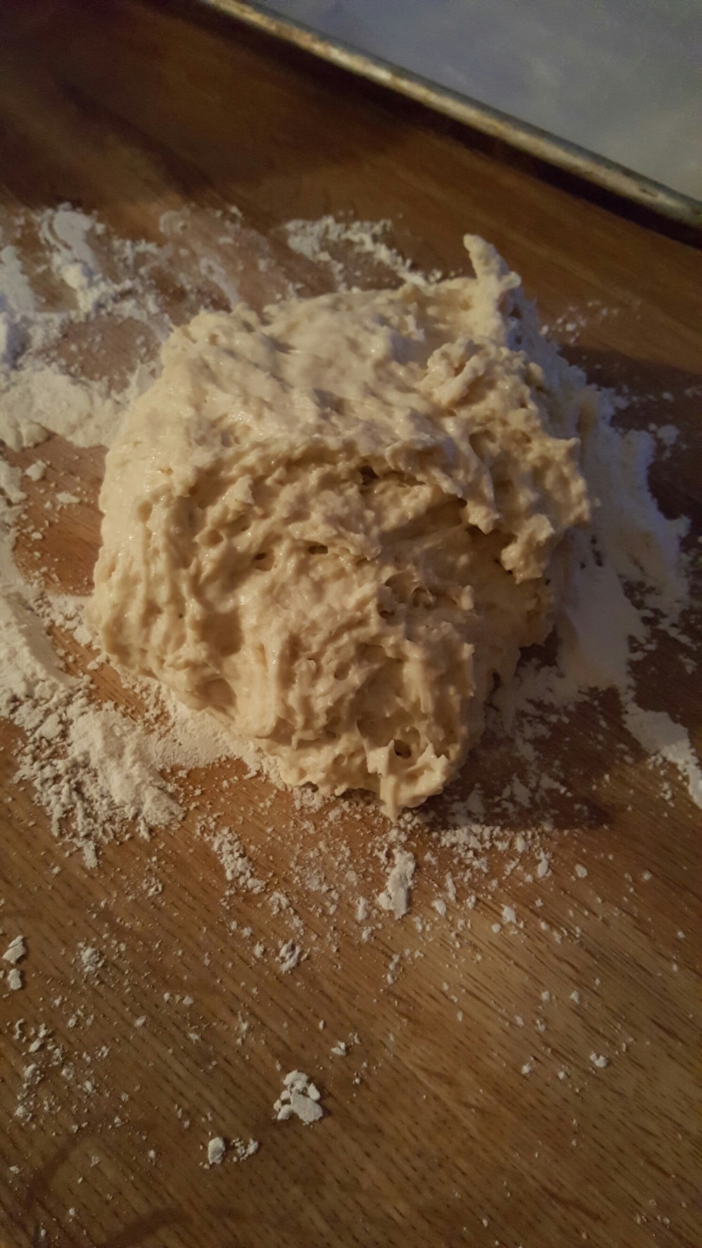 now flour up a clean area of yo counter n drop da dough ball on it