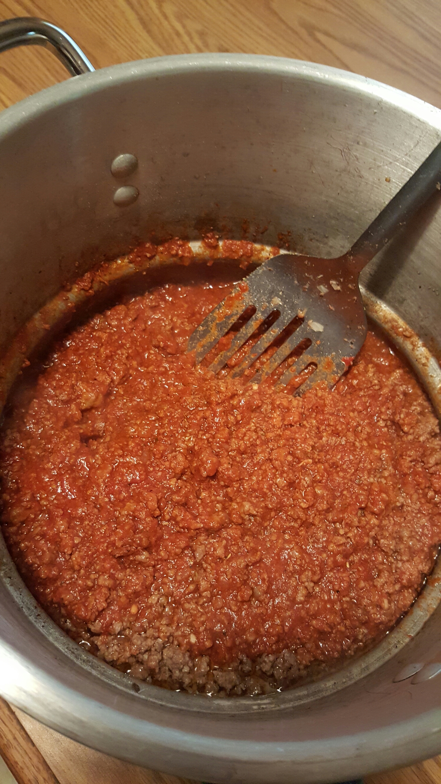 sounds like alot but u probably got most of it in yo cabinets already. i usually just gotta get meat n noodles and a onion lol. k. first well get on da sauce. dice up da onion super fine and add it along wit the oil and garlic to a large pot and cook it all for bout 5 min on med high just to release da flavors then add yo meats into it and break em up really good wit a spatula n fill da pot wit water til it just covers da meat and bring to a boil stirring and breakin da meat up often then reduce heat to low n simmer for bout half a hour or til da water reduces down
