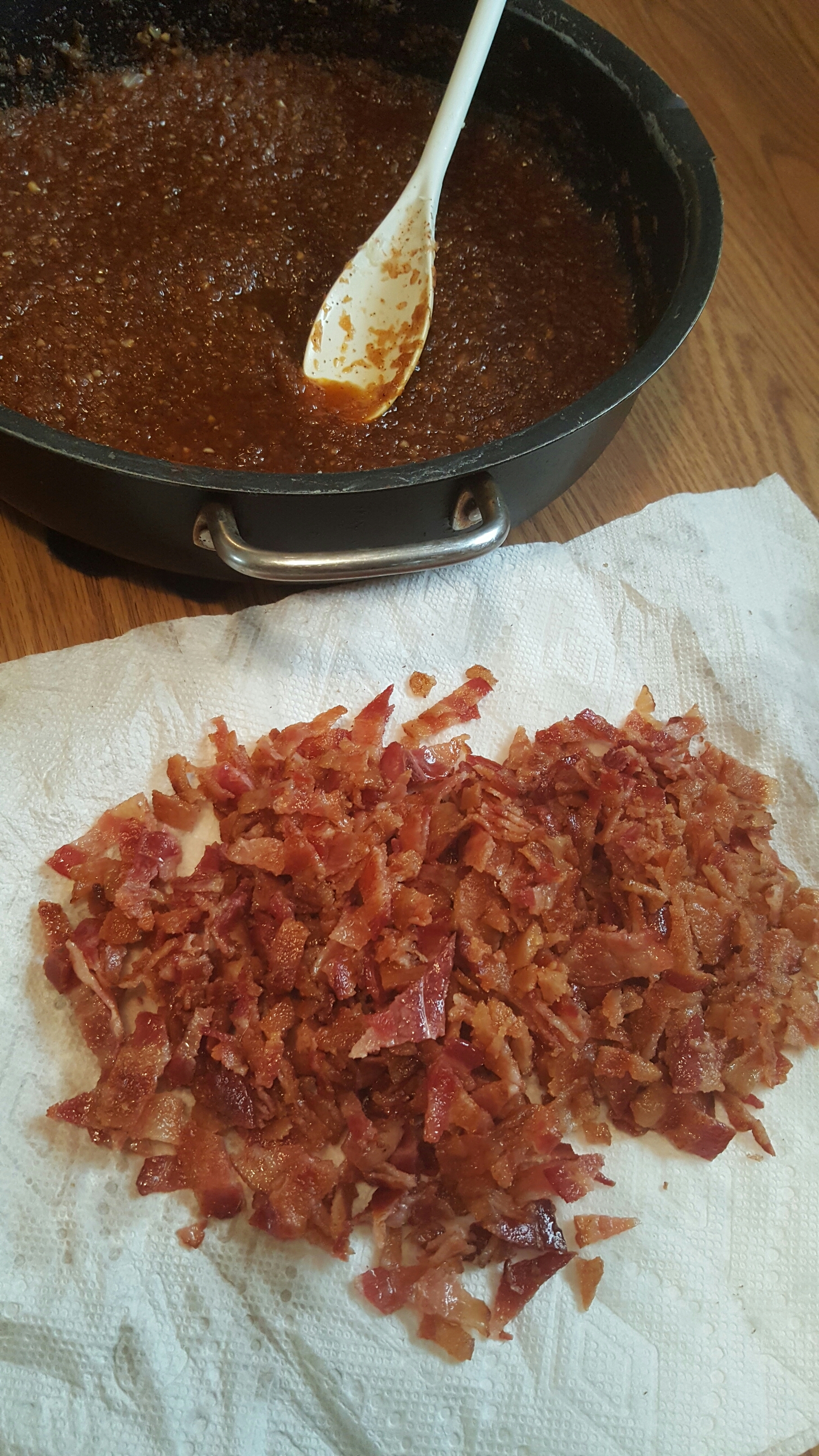 this stuff is gonna make a great topper for brats, burgers, pulled pork or like im doin now just eatin it out da jar lol dont judge its candied bacon crack lol. i looked up a bunch of recipes n pieced my own version together one regular n one hot ill explain the hot version as we go heres what we need