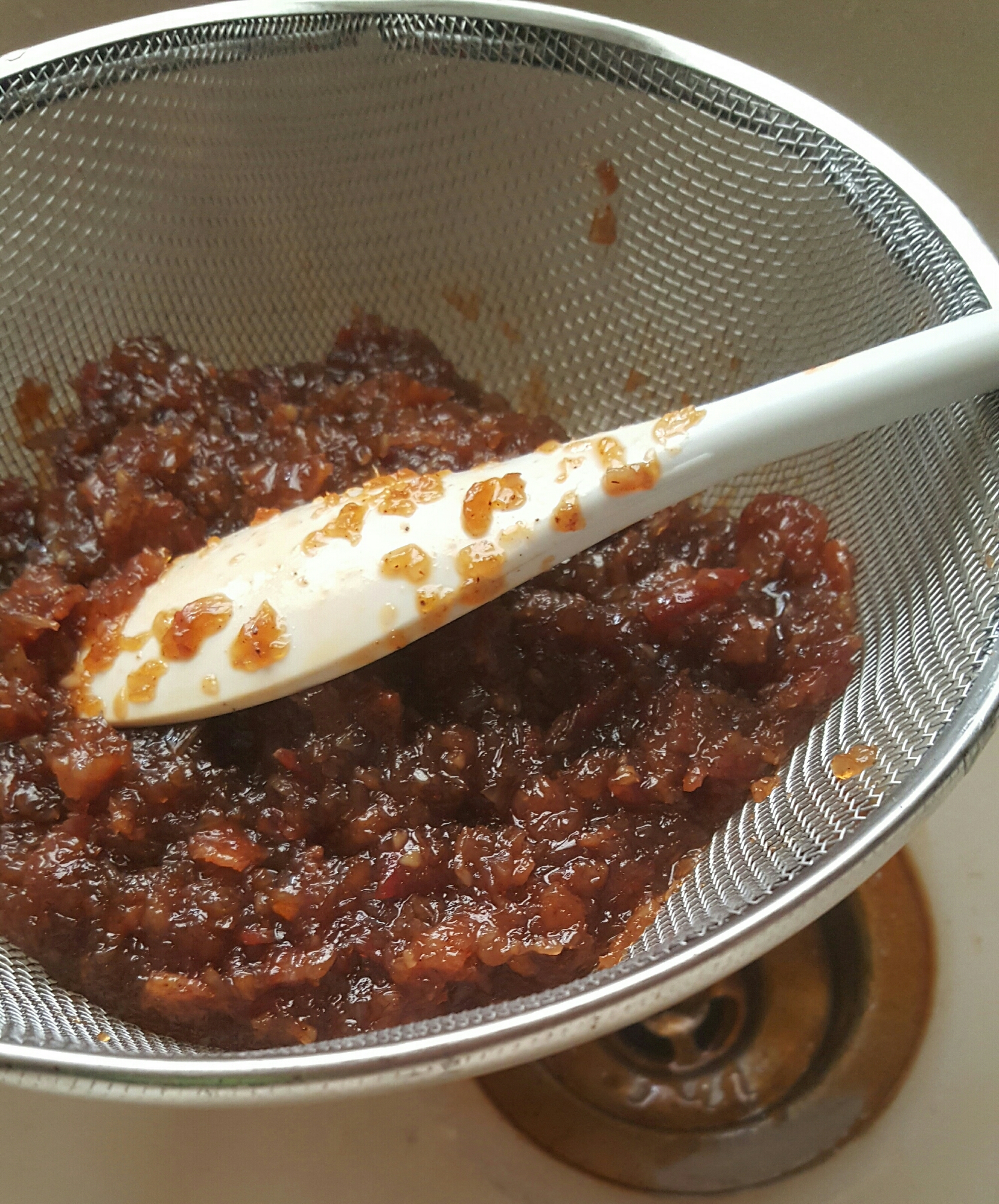 u can see how much it cooks down but theres still gonna be sum bacon grease in there which is cool if u gonna use it all that day but if u gonna jar it up for later its best to put da mix into a sieve(mesh strainer) n strain out da grease. just put it in a sieve in da sink for bout 10 min stirrin it up ever few min. youll be suprised how much grease comes out lol. mmm bacon grease tho