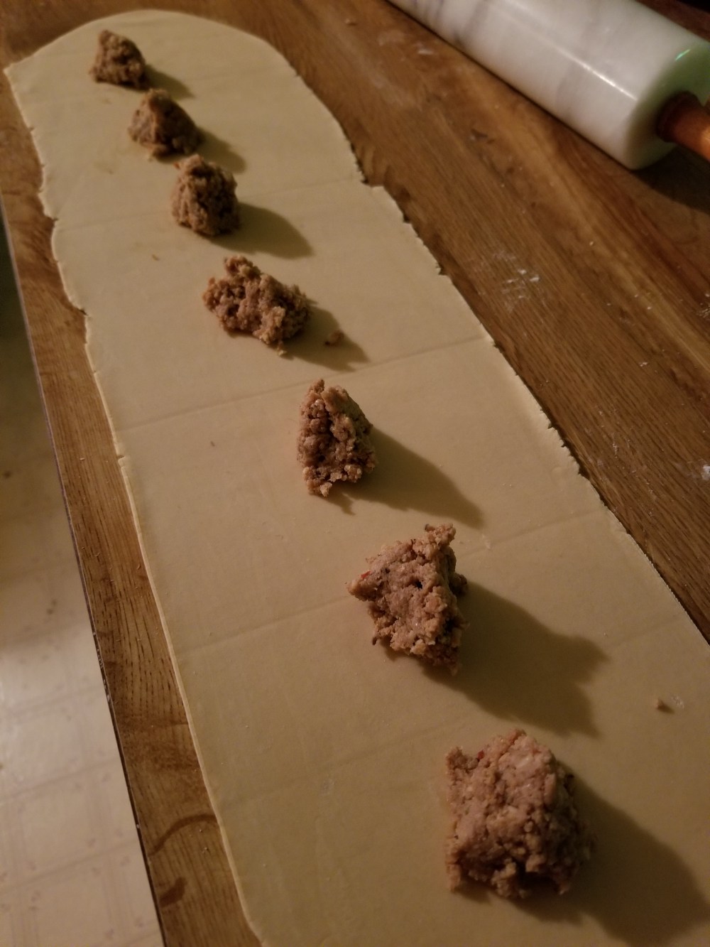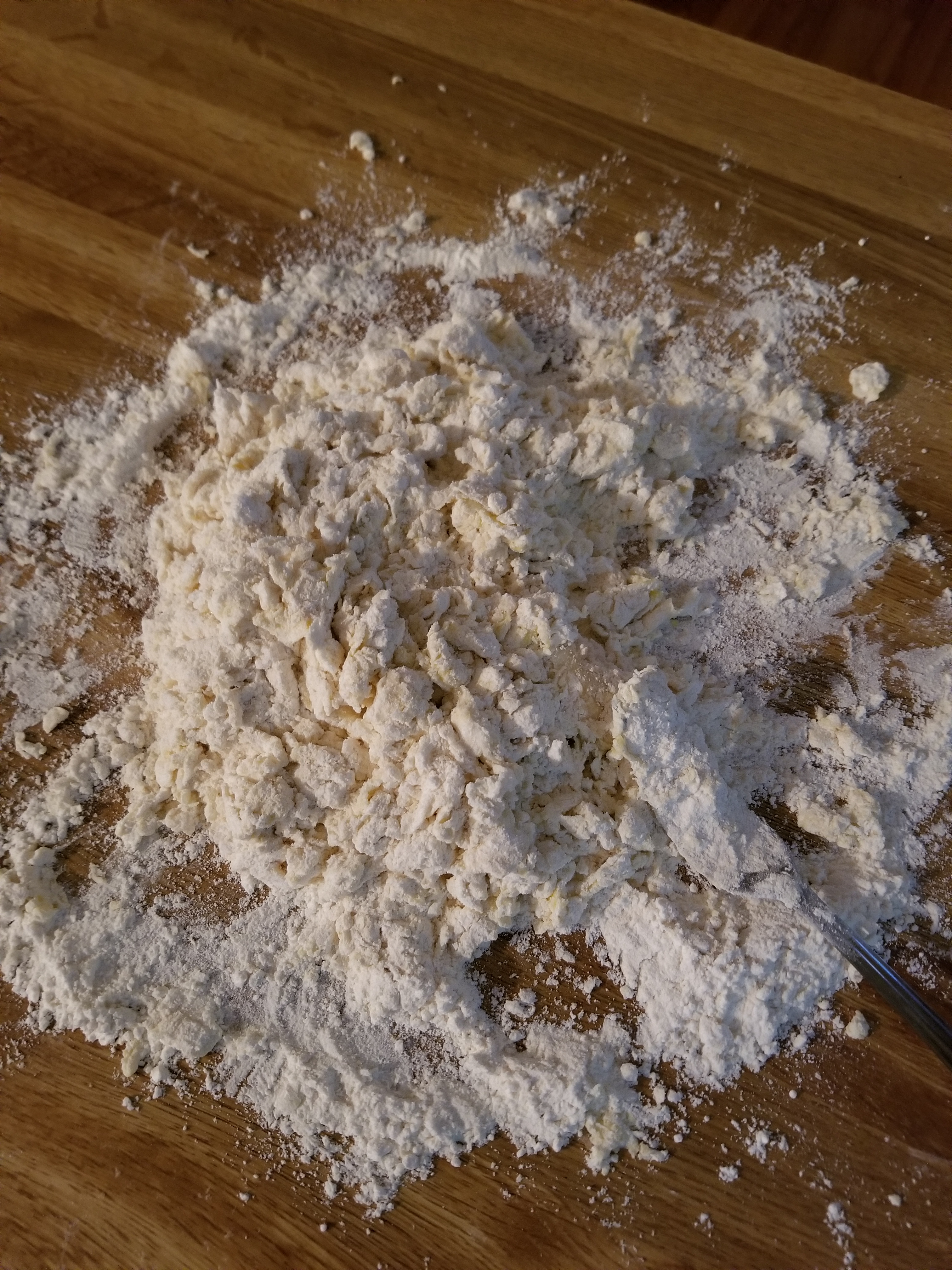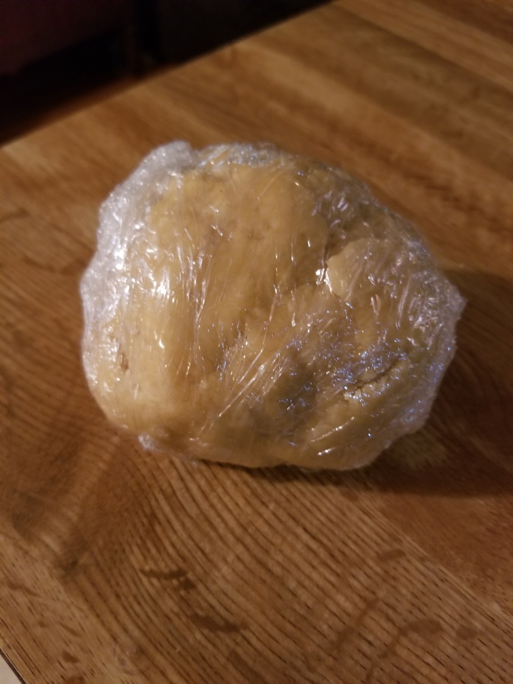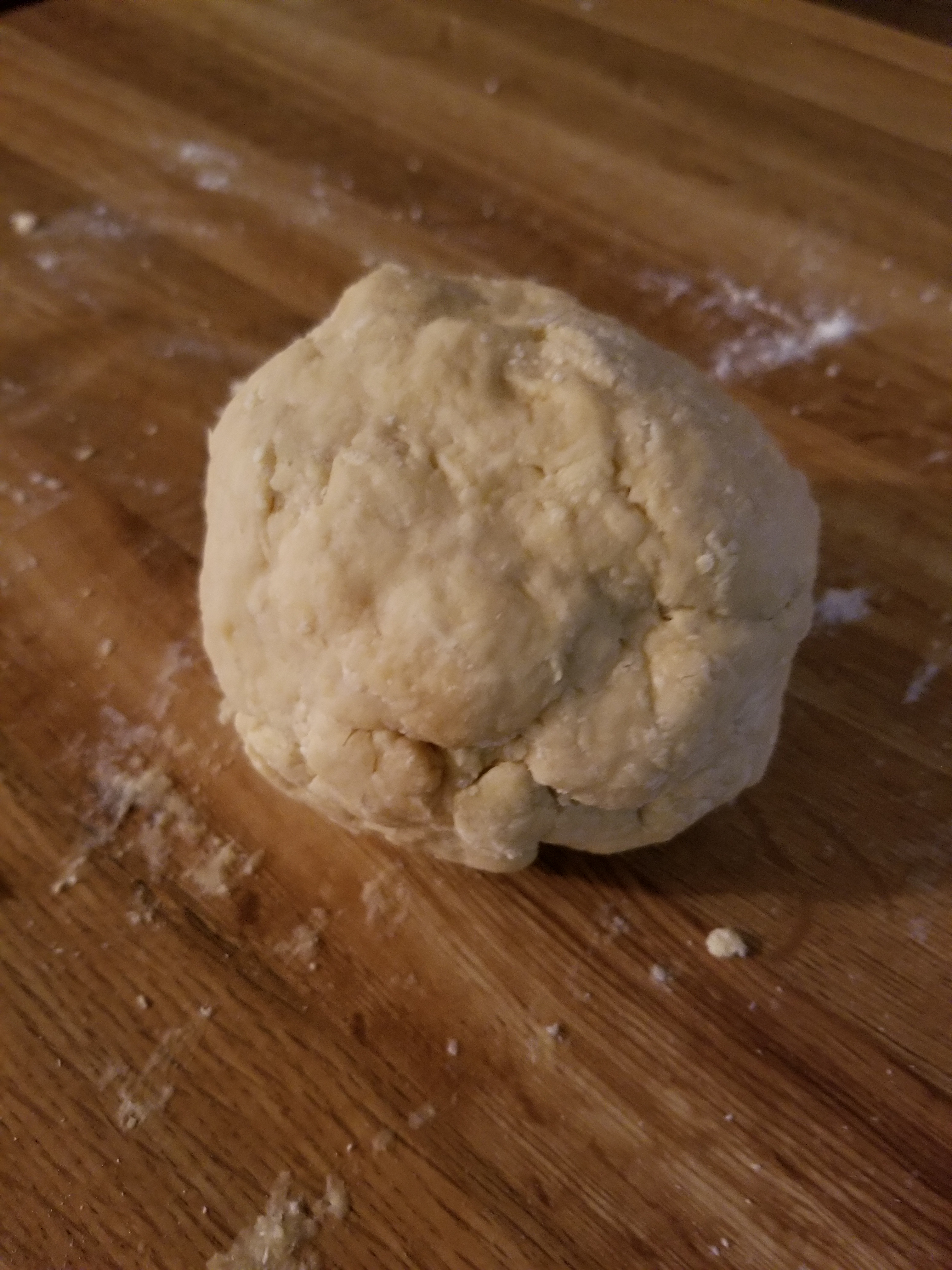 k now da fun part time to put em all 2gether grab yo dough ball and pull off about a 1/3rd of it and flatten it out a bit on a very very lightly floured area