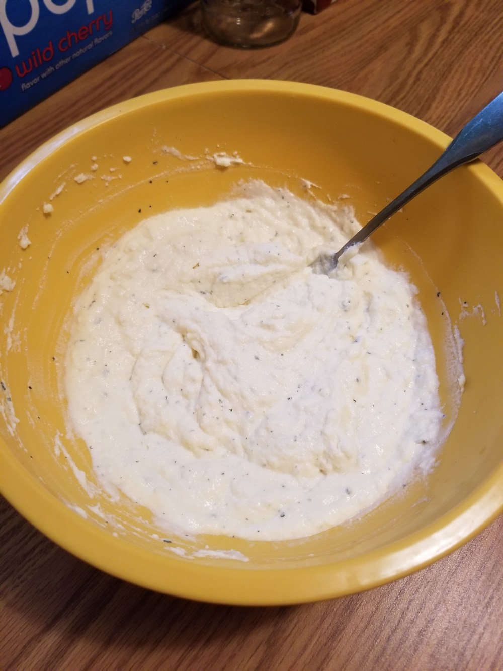 n try not to just eat da fillin by itself lol. sooo good tho. k. now for da cheese just combined all da ingredients into a bowl n stir em up n adjust da seasonin as u want it