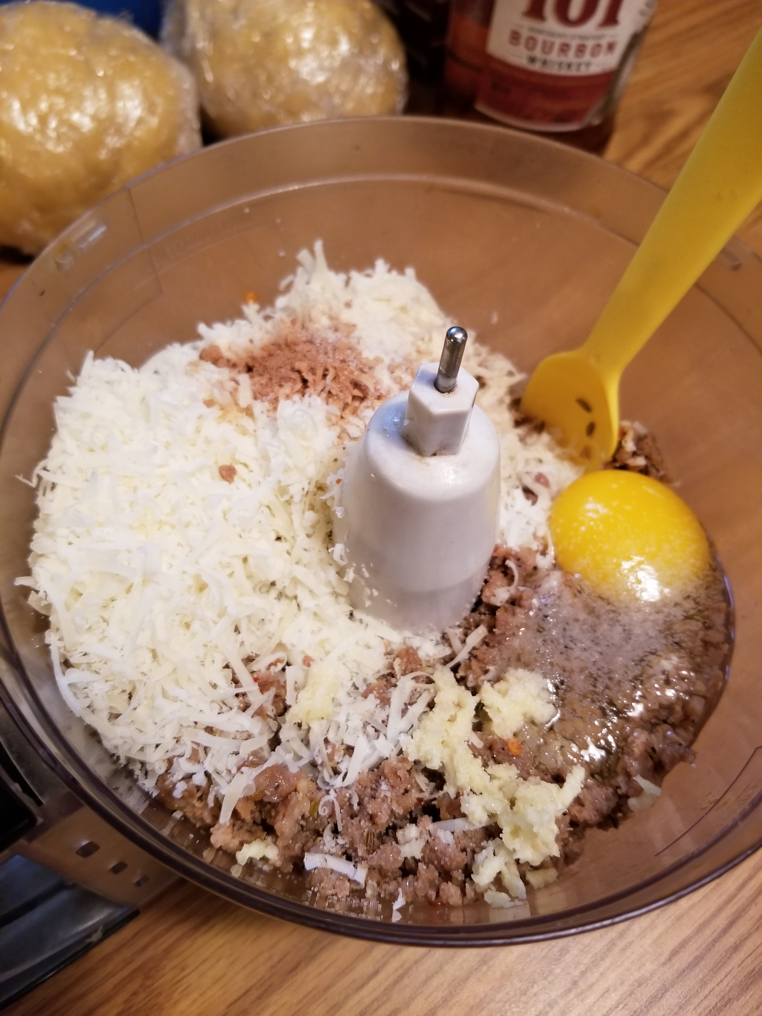 after its cooled n drained sum put da meat into a processor along wit da garlic egg cheese salt and nutmeg n process it till u got a pasty like consistancy. bout a min or so