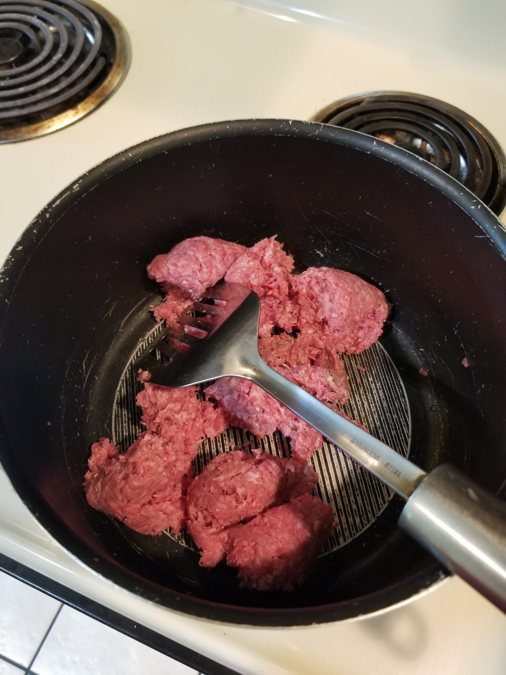 k first drop da meat into a pot n break it up wit a spatula or yo weapon of choice lol oh by da way. i bought a new house so i got a new cookin tool…LIGHT LMAO no mo head lamp cookin fo me๐คฃ๐คฃ but stupid electic stove. ill fix that soon tho. i need ma fire yo ๐ฅ๐ฅ๐ฅ๐ฅ๐ฅlol