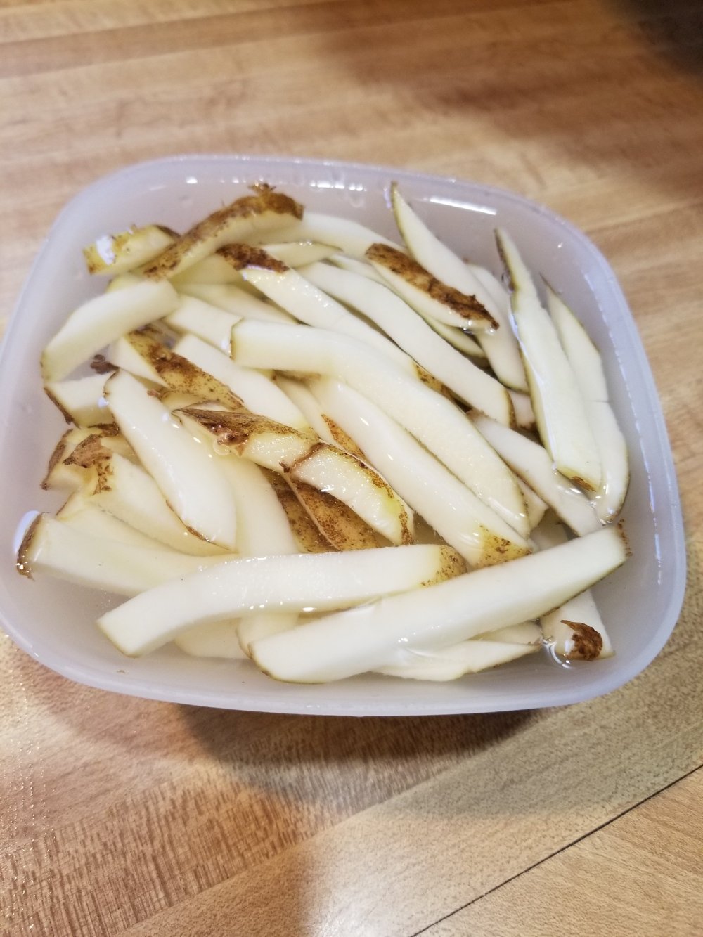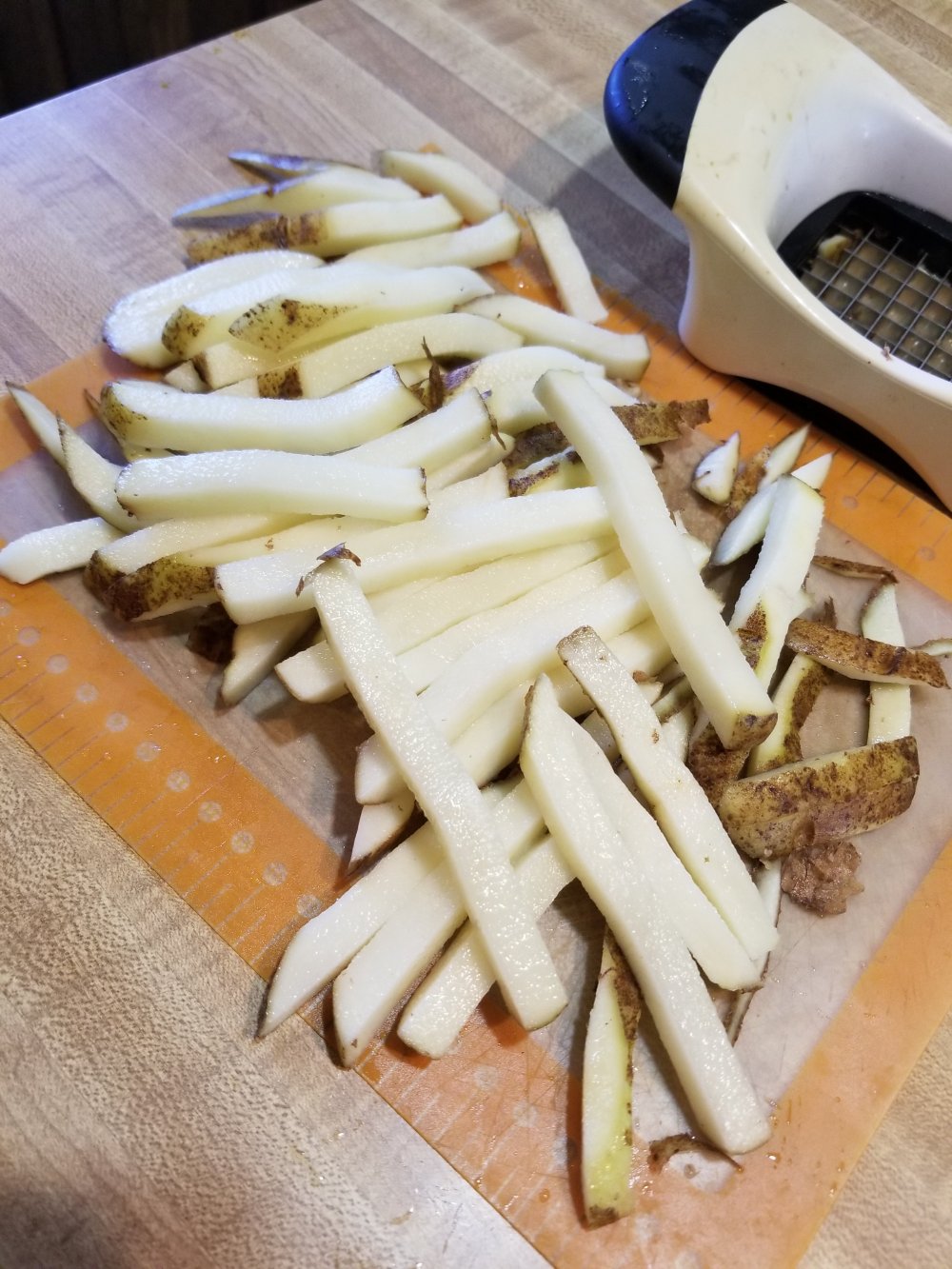 yup. its ready to spead love all over sumthin lol. k lets get on da fries. grab sum taters n wash em off real good n cut em up into fries then let em soak in cold water for boot 20 min to an hour to get sum starches out or theyll fry up dark brown n weird lol