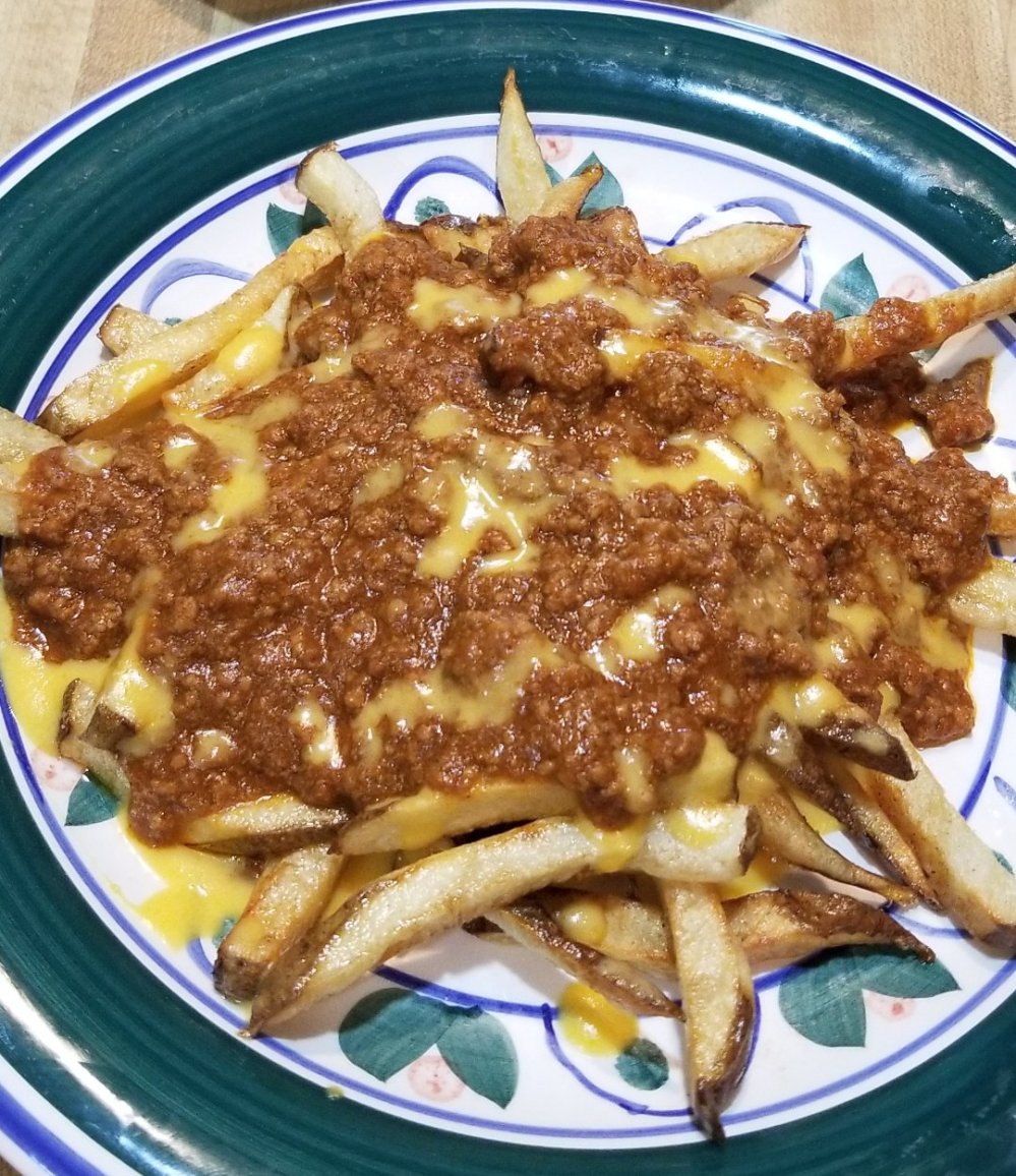 thing of beauty rite hurrrr lol. ive been wantin to blog my chili sauce for my boyz for awhile n what better way than usin it for sum chili cheese fries n wit football season startin up we got fries n dogs n burgers n skins to drown in this epic chili sauce n anything else that gets in our way lol. ive been workin on this sauce for years n have finnally got it down to taste like the sauce u get from a seasonal pop up every summer ice cream shack which im sure uses canned shit but i dont care. its good n u cant buy anything at da store like theirs. hormels close but not quite i wanted a beefy type wit earthy flavors n not a sweet coney dog style sauce n im pretty happy with it now after years of trial n error i have ma meat sauce๐ heres what we need