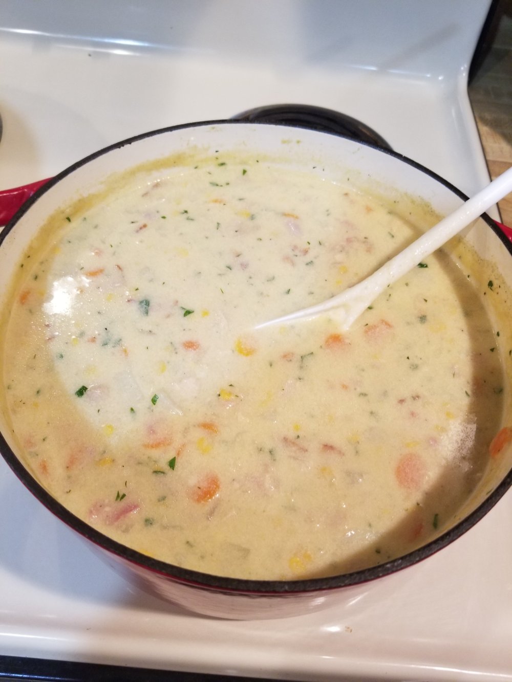 soup seasons upon us time for sum mutha#$%@!? Soooooops lol n thick ones too n they dont get much thicker than chowders n its boot to get cold round here so we need sum stick to yo bones thick ass soups n this one does da trick. its got alot goin on in it but is easy n pretty quick 2 make n my boys like it so stock up on crackers n get ready to get filled wit chowder lol