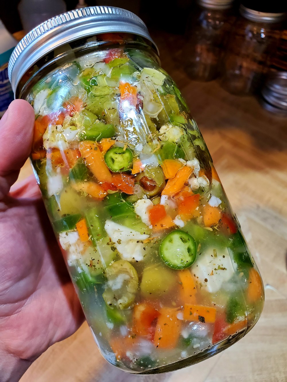 now that the milds done mix in yo serranos to the batch n make u a hot jar real giardiniera lol. u can add red chili flakes too if ya want n y not