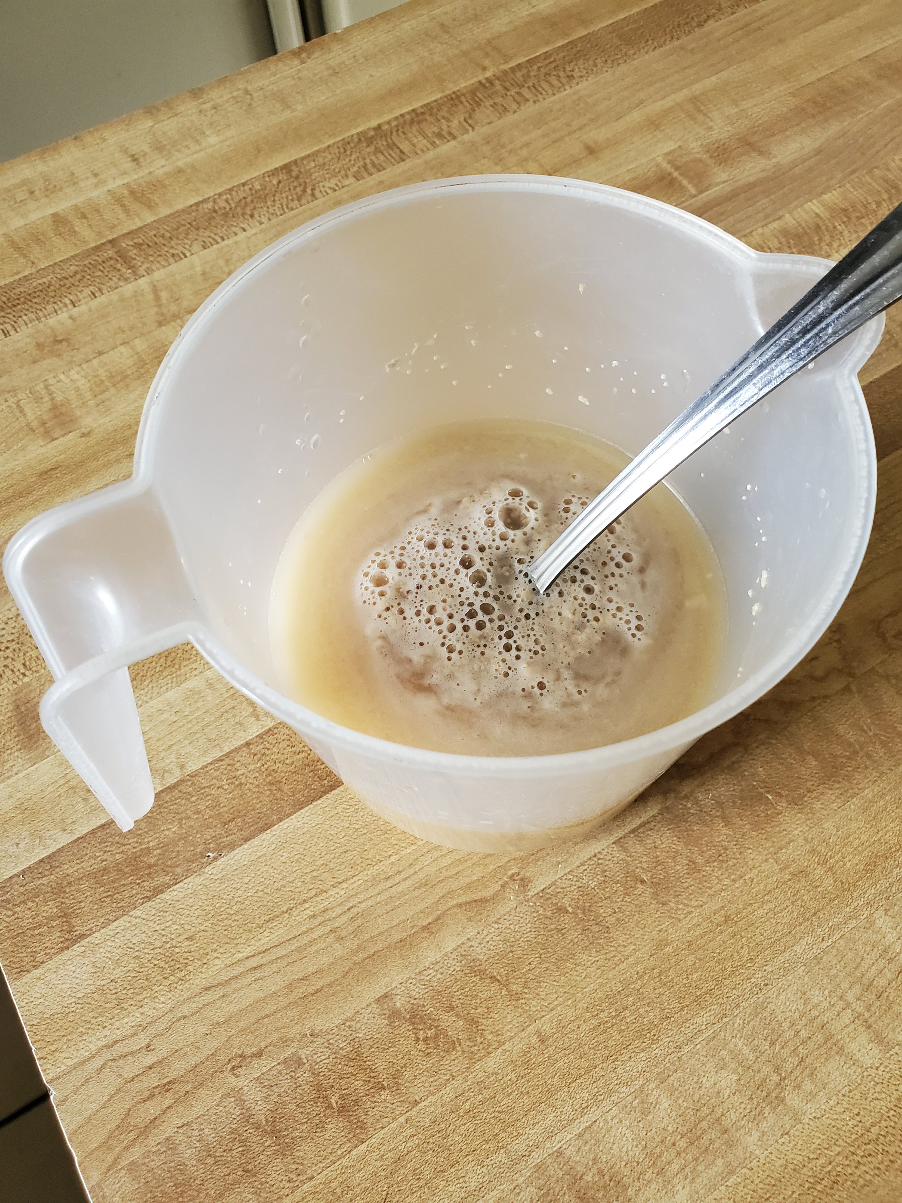 now. bring the pot to a rapid boil n then cover n drop yo heat down to a simmer. just below med low. n itll take boot 3 hours to braise n get fork tender. n try to not completly cover the meat in the liquid i usually. put half da stock in the pot then meat. just to make sure im not drownding the meat. cuz then your just boilin it. n that will make the meat less tender n more rubbery sorry shoulda said that earlier🤪 but anyway. ya. not real hard tho huh lol. lookin for 190 to 210 internal temp n itll be fall apart tender af now off to da bread. grab your water n nuke it til its round 105° to 115° then drop in yo yeast n brown sugar n let it activate til foamy. boot 10 min