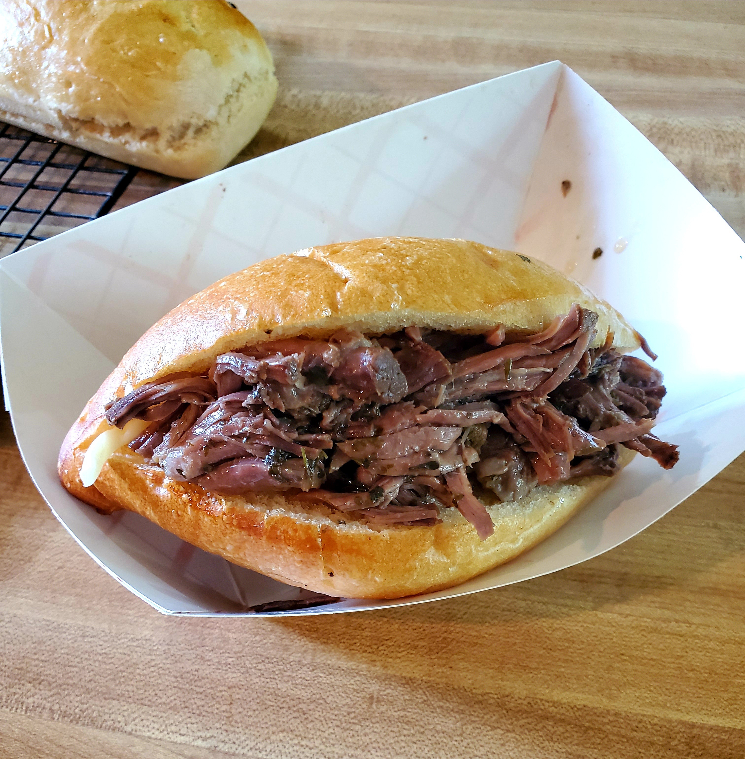 i like to shred it n keep it seperate from the au jus. left in da pot. i just lattle sum of that good broth over da meat n leave the rest of the juice to put into cups to dip yo sammich in. but now alls left is to slice yo bread n make u a sammich i use provalone cheese n my giardiniera 😁