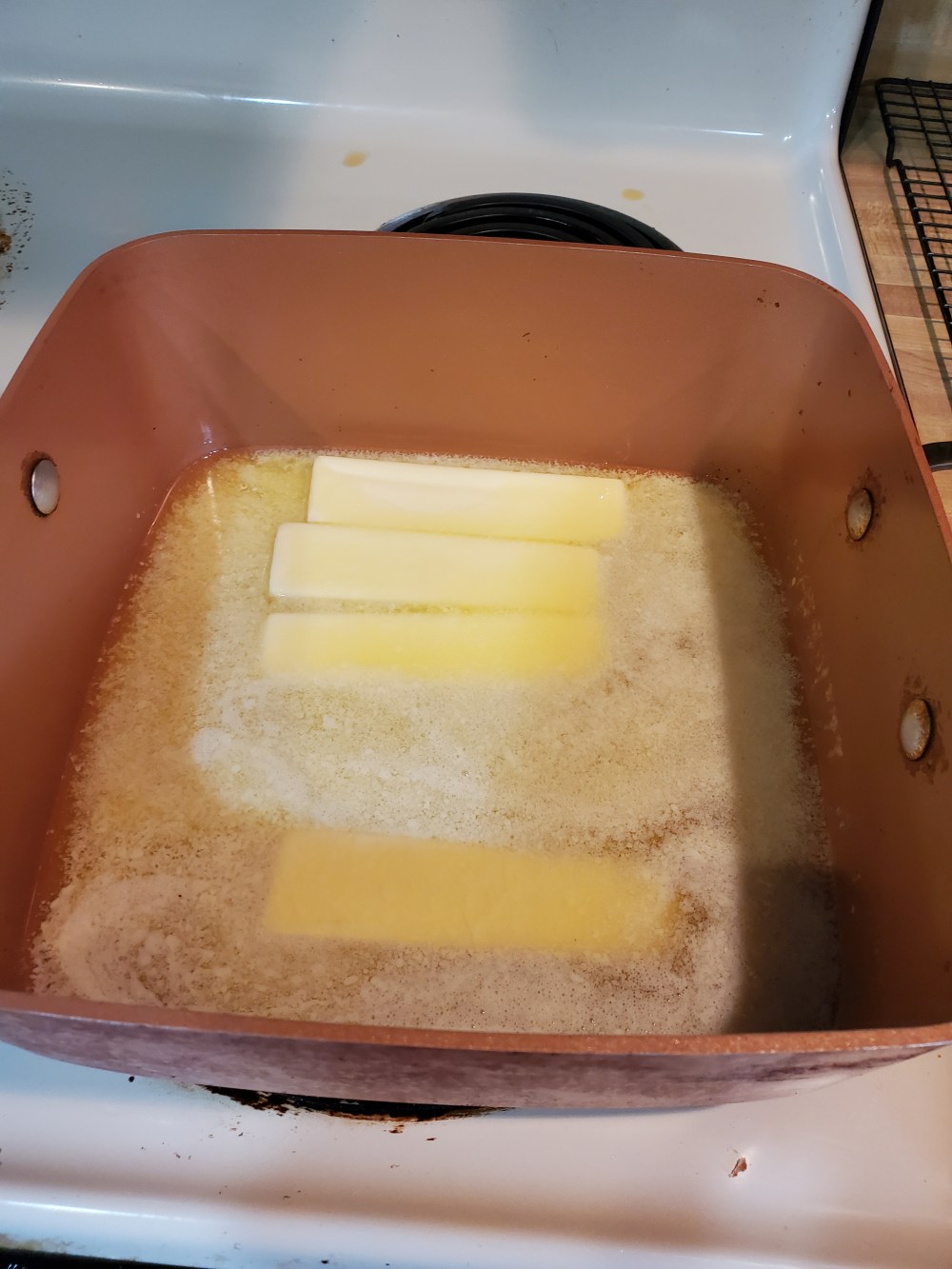 k first get yo butter into a deep pan u can fry n and on low heat start to melt em up