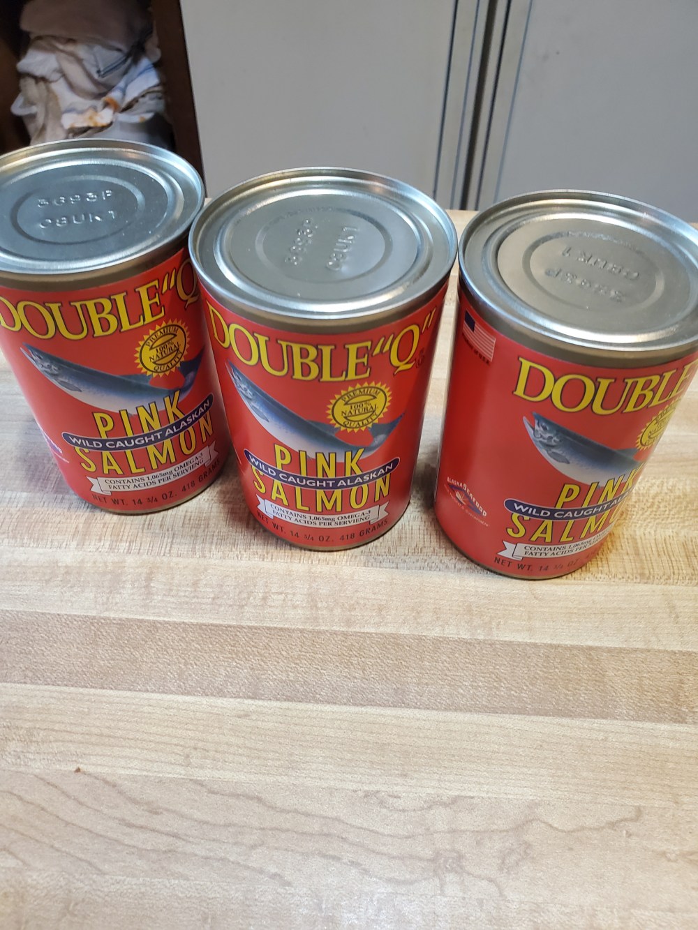 n its fine if u dont get em all the salmon is pre cooked already so the bones are soft but its a texture thing to some. they dont bother me. im not scurd🙃 but anyway. after u debone the cans add em to da crackers along wit da mayo, lemon juice and eggs and get yo paws n there n mix till u get em all combined to where u can make patties