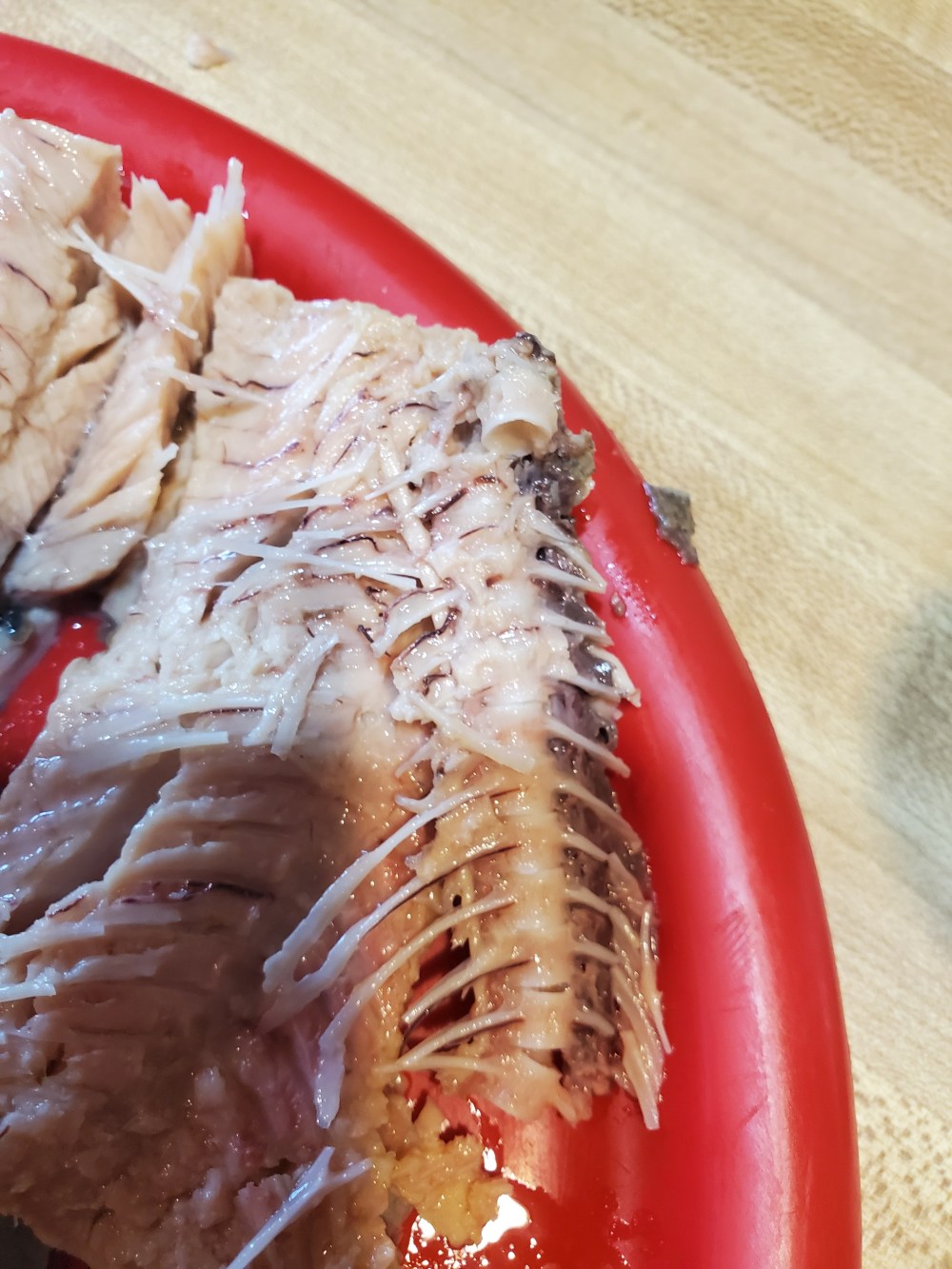 mmmmmm lmao. ya. they dont look like much n may turn peeps off so best do this part when they not lookin 🤣🤣🤣 u gotta gently seperate the fish cylinder so u can remove as much of the bones as u can n their usually all in the center