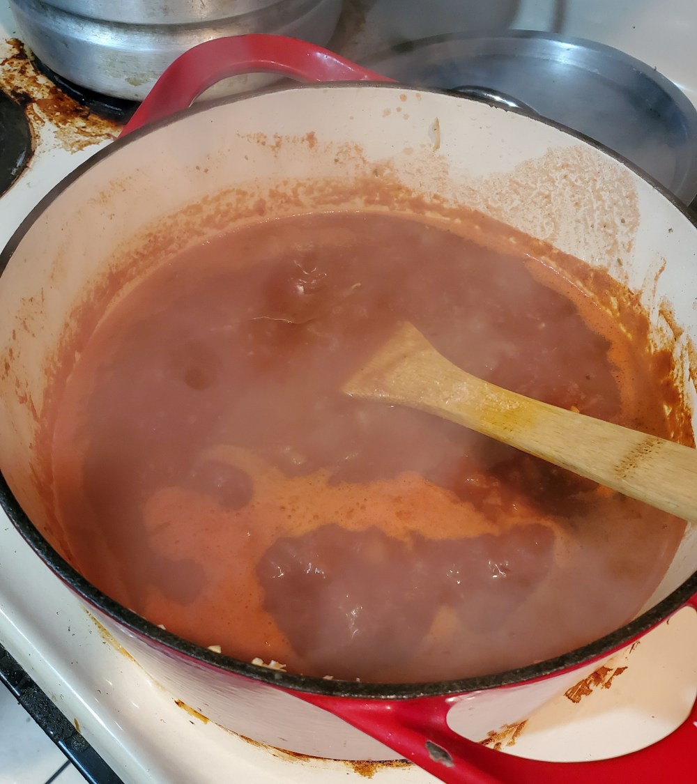 k after its all stirred up add yo paste and tomatoe puree n cans of soups n well let that come to a boil