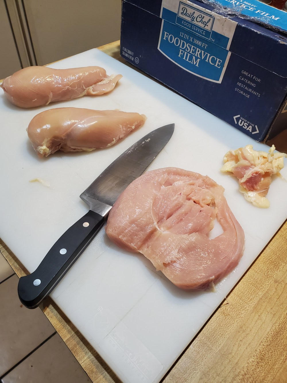 k while thats cookin up well start to butterfly our chicken n beat em flat