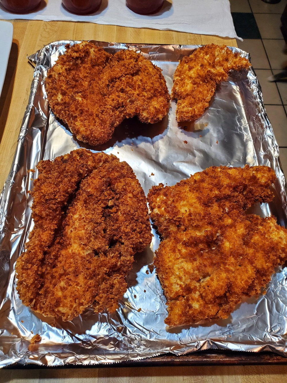 k n after u get your oil heated up to 350° go ahead n dip your chicken da flour then egg then panko n drop into da oil for bout 6 min n try keep oil below 350° n above 325° lol n when done rest em on a wire rack